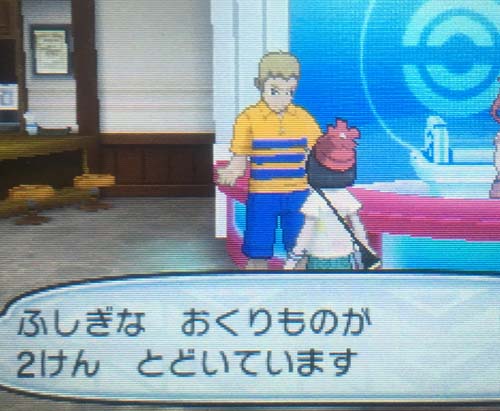 適当なポケセンに行くと、例のお届け兄さんがいる。