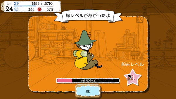 今回の旅土産1回で、スナフキンの旅レベルが上がった。