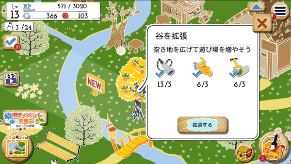 レベル13になると、谷を拡張して