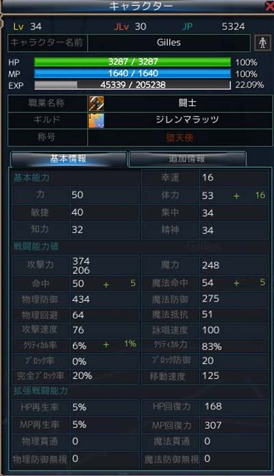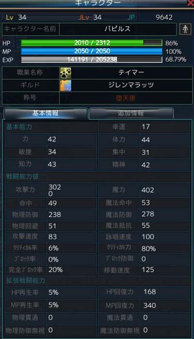 ステータスはこんな感じ(レベル34現在)
