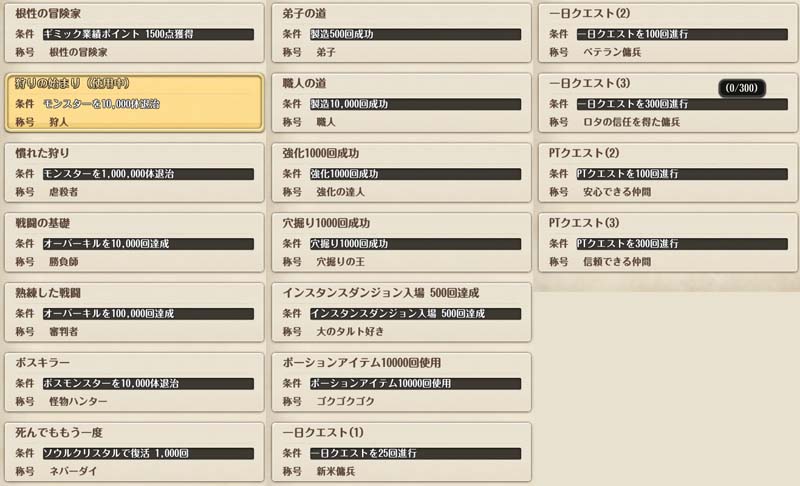 今回は"狩人"という称号が貰えたので、