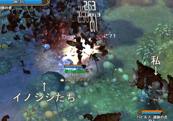 イノシシの群れに向かってシュバババ。