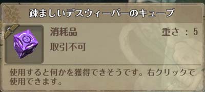 討伐報酬として "疎ましいデスウィーバーのキューブ"というものを貰った。