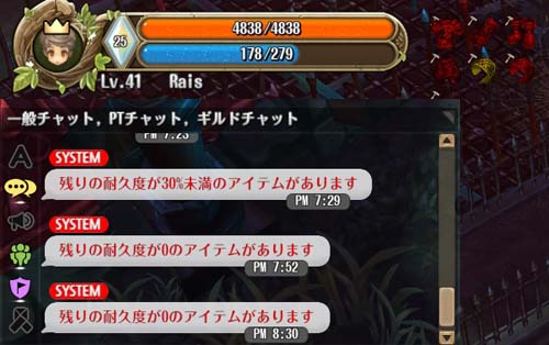 のぶさんの装備耐久度が0になり、裸状態に・・・。