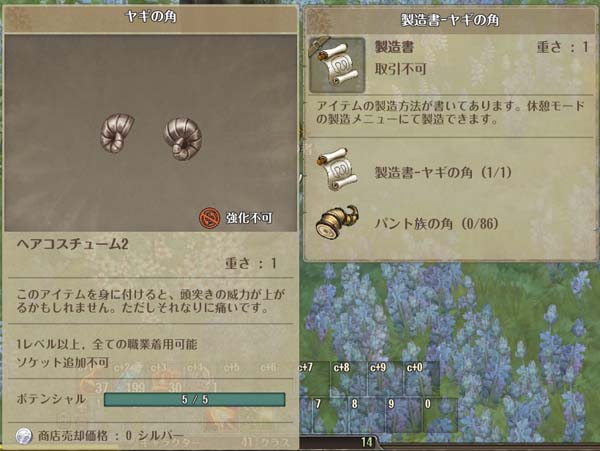 中身はコスチュームアイテム "ヤギの角" の製造書だ。